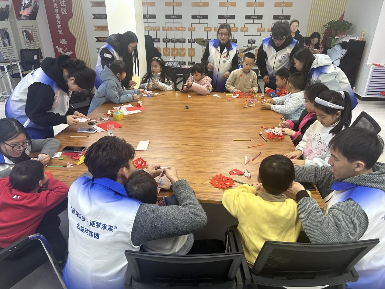 (体育学院新闻中心)2026年1月14日,“体育筑梦·逐梦未来”公益实践团走进嘉都社区,开展“管道保护宣传”系列活动第五讲——“巧手剪窗花 安全记心间”主题课程。团队以国家级非物质文化遗产剪纸艺术为载体,将管道保护安全知识与传统美学教育深度融合,让社区少年儿童在指尖创作中收获知识、传承文化,为冬日社区增添了温暖的公益氛围。 剪纸实践环节成为活动的亮点。志愿者以“安全窗花”为创作主题,从剪纸的历史渊源、基本技法讲起,通过图文展板展示传统窗花与管道安全元素结合的创意作品,引导孩子们将安全理念融入艺术创作。“先把红纸对折两次,沿着边缘剪出半圆,再在中间镂空出管道标识的形状……”志愿者手把手指导孩子们学习折叠、剪刻技巧,耐心纠正动作细节。孩子们专注投入,剪刀在红纸上灵动穿梭,一张张承载着安全寓意的窗花逐渐成型:有的剪出“管道安全”文字纹样,有的将管道图标与吉祥花纹相结合,还有的用对称构图呈现“安全守护家园”的创意。 随后在志愿者的协助下,孩子们领取了安全剪刀、彩纸和样板图,开启创作之旅。活动现场分为“传统”与“创意”两部分。孩子们对照样板图,认真剪出“双喜临门”“年年有余”等经典图案。同时鼓励孩子们自由发挥,将现代元素融入传统窗花。在志愿者的指导下,孩子们从“折、画、剪、展”四步法入手,逐步掌握剪纸技巧。针对低龄儿童,团队设计“安全主题剪纸模板”,用半成品图案降低难度;有小朋友剪出“太空飞船载福字”的图案,他希望福字能像飞船一样飞到每个家庭!还有孩子剪出“卡通小马抱元宝”,引得全场哈哈大笑。志愿者们穿梭其间,耐心指导孩子们处理细节。当一张张红纸在孩子们手中变成栩栩如生的窗花时,活动室内年味吉祥气息满满。 从一张红纸到一幅窗花,从一双小手到满室春意,这场充满温度的公益活动,不仅让孩子们体验了剪纸的乐趣,更在他们心中播下了传承传统文化的种子。新春将至,愿这一片片“中国红”,能温暖每个家庭,照亮文化传承的未来之路。 ——燕京理工学院体育学院新闻中心