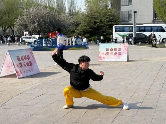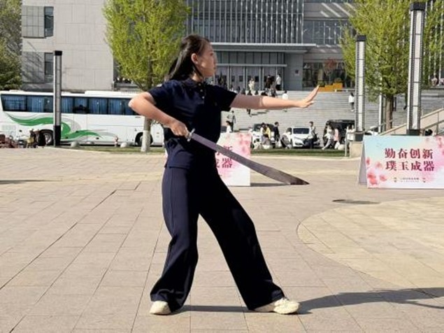 (体育学院新闻中心)春风送暖,海棠开放。近日,我校体育典藏馆广场前人声鼎沸、武风浩荡,一场精彩纷呈的校园武术比赛在此盛大举行。来自全校各学院的武术爱好者们齐聚一堂,以拳会友、以剑传情,用一招一式展现中华传统武术的魅力,用青春活力书写校园体育的蓬勃生机。 比赛在2026年4月11日下午两点正式开始,“勤奋创新 璞玉成器”的标语在春风中格外醒目。比赛在刚劲有力的拳术展示中拉开帷幕。选手们身姿矫健、气宇轩昂,出拳迅猛有力,收势沉稳如山,马步稳如磐石,掌风呼啸生威。无论是单人比赛的行云流水,还是集体比赛的整齐划一,都将长拳、太极拳等拳种的精髓展现得淋漓尽致。 器械比赛环节更是将现场气氛推向高潮。长剑在手,选手们腾挪闪转、劈刺点崩,剑影翻飞间尽显飒爽英姿;单剑、集体剑等不同形式的表演,或灵动飘逸,或气势磅礴,将剑术的刚柔并济之美完美呈现。还有选手带来的特色器械展示,招式变幻莫测,攻防兼备,充分展现了中华武术器械的博大精深。 赛场上,队员们动作整齐划一,刚柔并济,拳术舒展有力,器械行云流水以高度同步的节奏完成集体项目。多支队伍同台竞技尽显中华武术魅力,各代表队凭借默契配合与扎实功底斩获团体优秀成绩。场下大家互帮互助、打磨细节、凝心聚力、奋勇争先。 这场武术比赛不仅展现了刚健有为的武术风采,更让中华传统武术在新时代舞台上焕发生机,实现了技艺的切磋与精神的传承。选手们以武会友、以礼立身,让武术文化深入人心,也用实际行动诠释了“在燕理,体育无处不在”的运动理念。